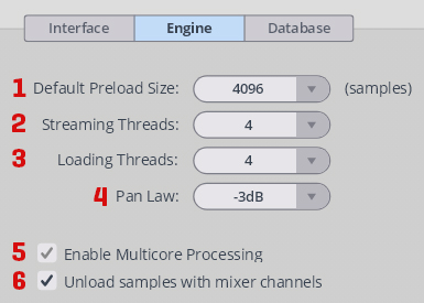 Default Preload Size: Kleinere Einstellungen verringern den Bedarf an RAM sowie die Ladezeit. Standard: 16,384 Samples.
