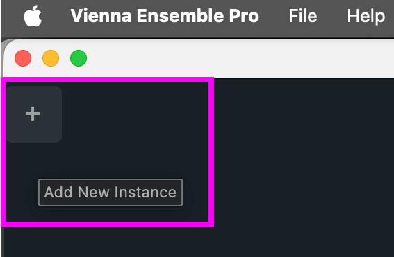 Beim Start von Vienna Ensemble Pro Server zeigt das Programmfenster nur das Logo der Software. Ein Klick auf das "+"-Symbol in der oberen linken Ecke fügt eine neue "preserved" Instanz von Vienna Ensemble Pro hinzu.
