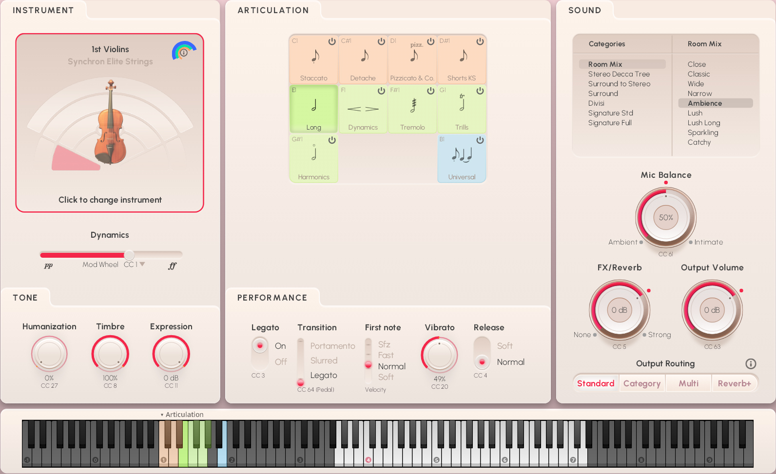 The presets are designed with compatibility to the Synchron Strings Pro in mind. This way it is possible to easily swap out the libraries, layer these or create divisi sections.