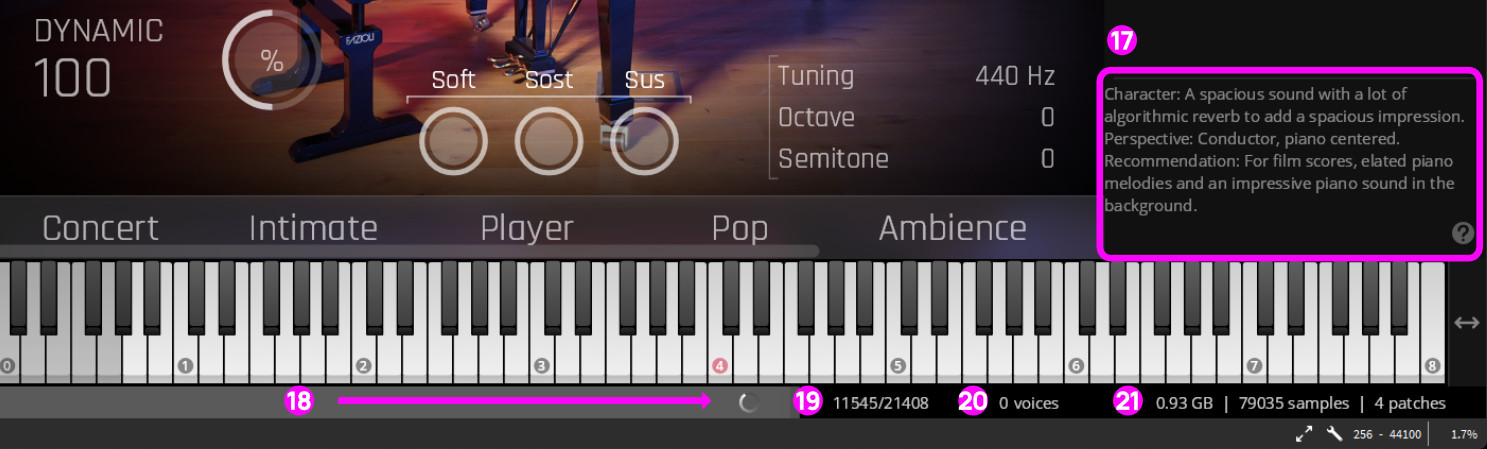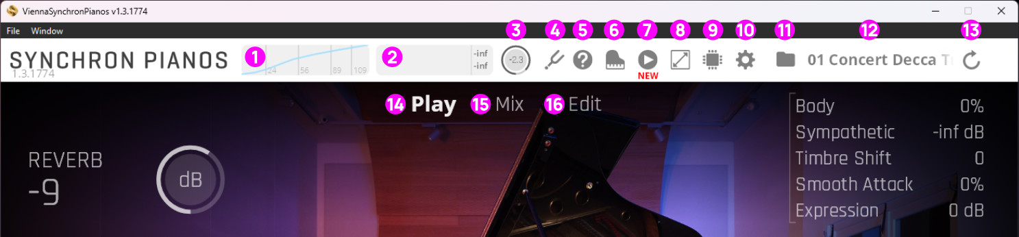 Play View: Lets you adjust all major parameters of Synchron Pianos.