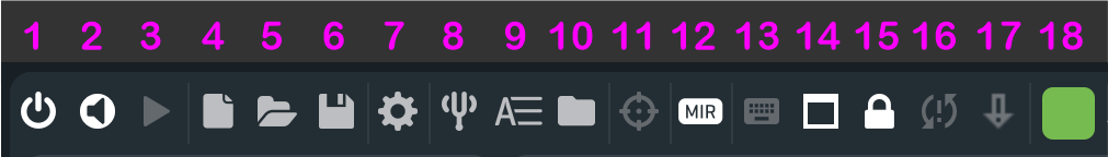 The taskbar in the upper left corner contains the following icons: