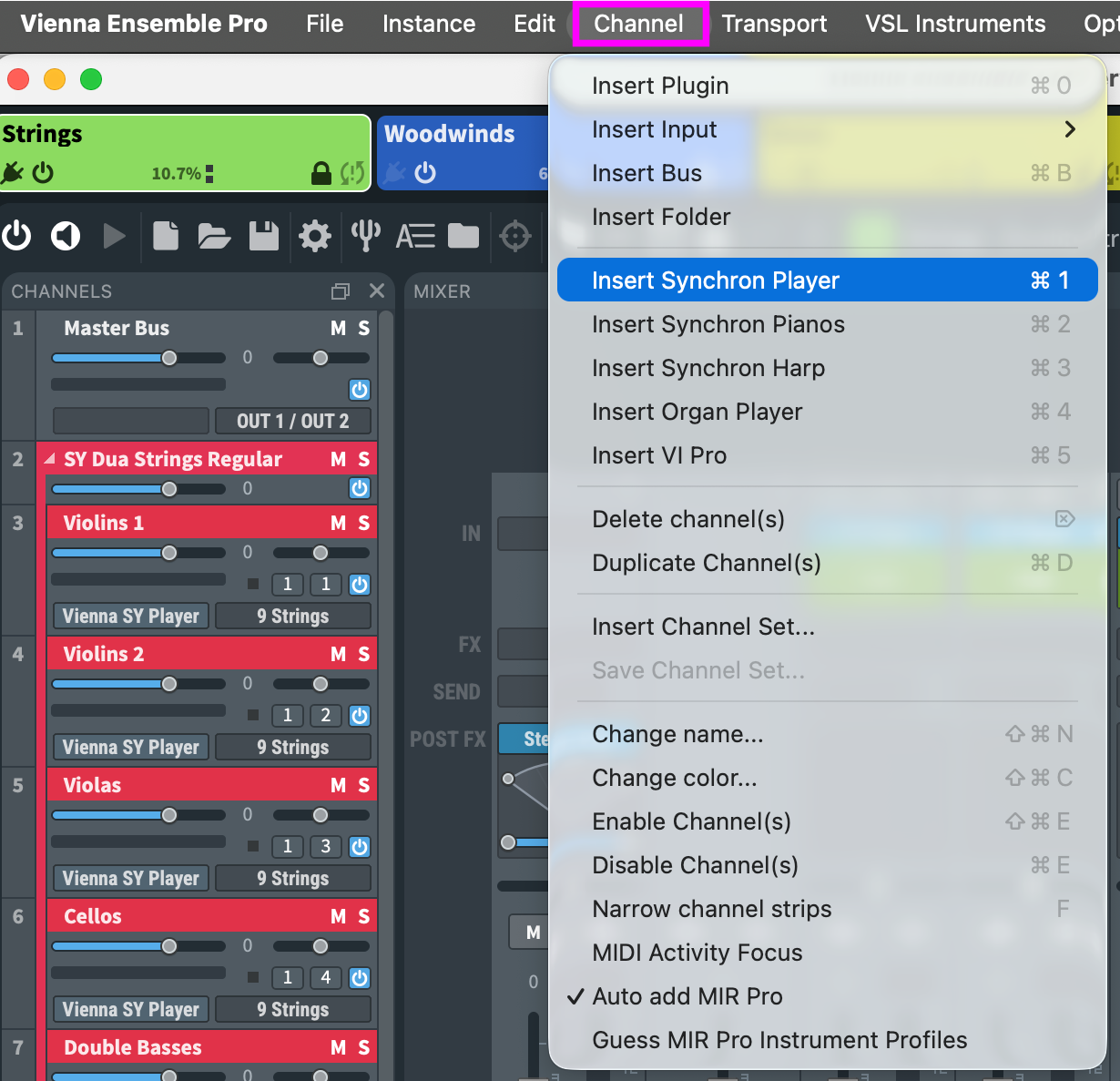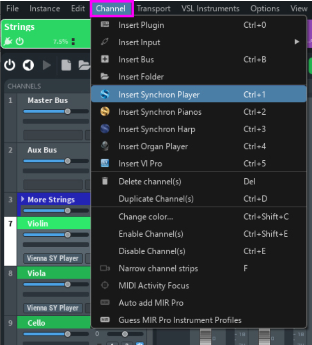 Insert VSL instrument channels
