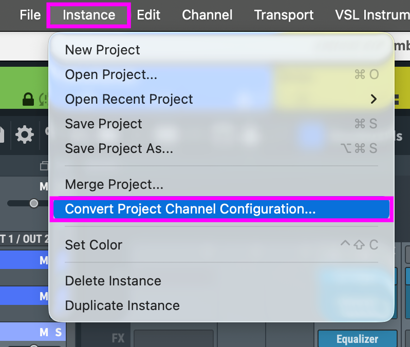 You can also convert a project/instance to a different channel configuration. This is a very useful option to convert a stereo project to any surround configuration: instead of opening a .vep file in the regular way, load the desired project using this conversion option.