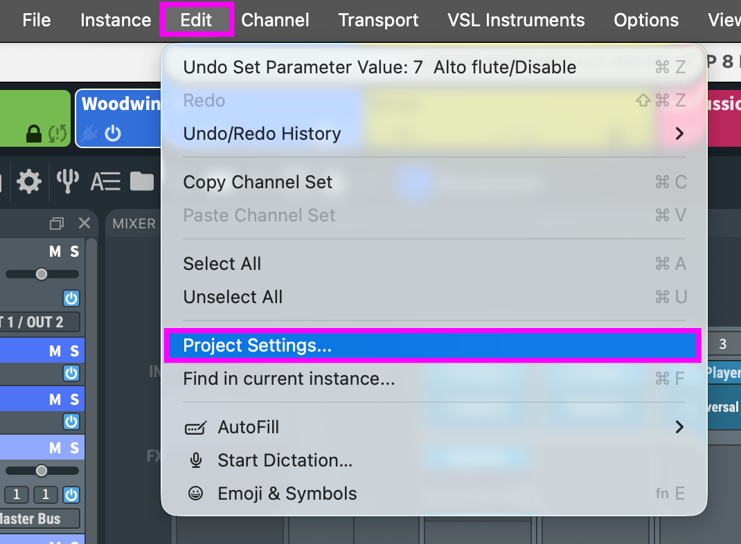 Master Tuning: Changes the tuning of all inserted VSL Instruments