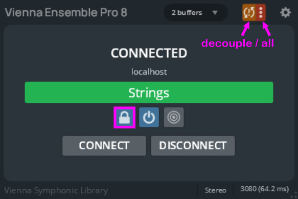 Don’t forget to deactivate DECOUPLE before you save your song. This way all Vienna Ensemble Pro information is stored in your sequencer project as a backup.