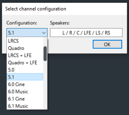 A Vienna Ensemble Pro Surround plug-in is available in hosts that do not allow setting a plug-in's channel configuration before the instantiation of the Plug-in (e.g., Cubase, where you insert Vienna Ensemble Pro as surround plug-in and choose the channel configuration in the Server Interface, see below). The Surround Configuration that the Vienna Ensemble Pro Surround plug-in should use can be set in its Instance Preferences:
