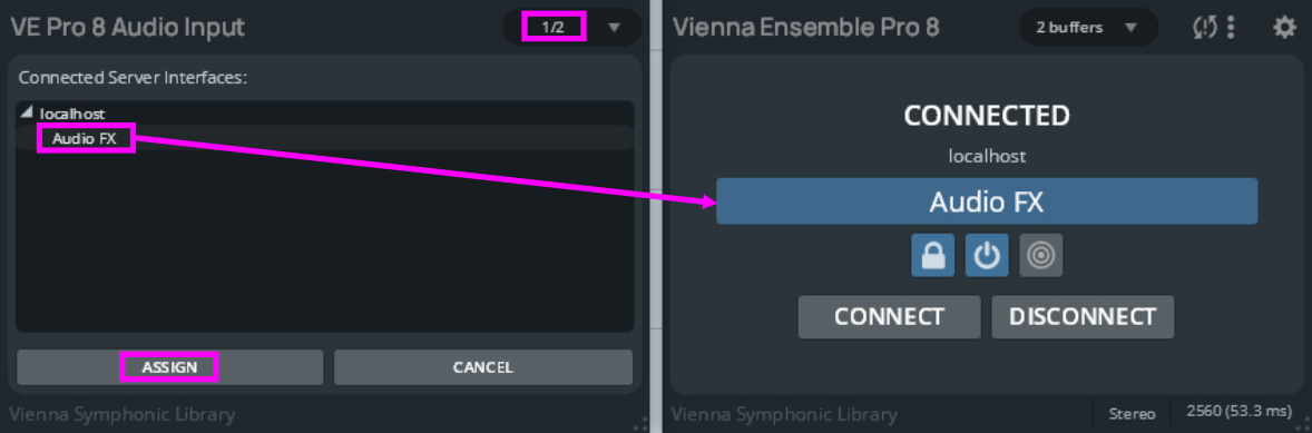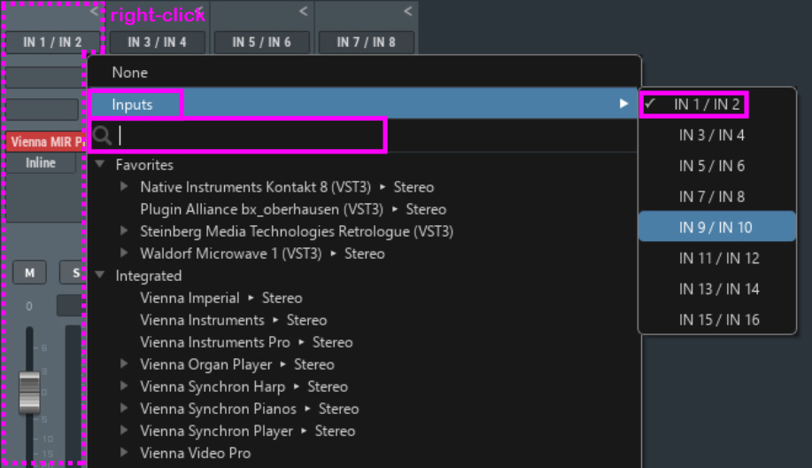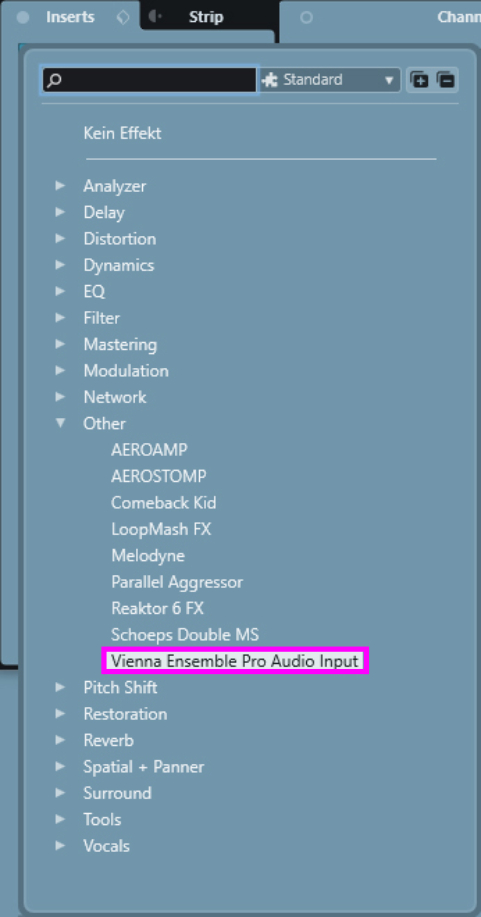Assign the corresponding input channel in the newly created Audio Input Channel in Vienna Ensemble Pro, and Audio will be sent directly to your Input channel, where you can process it any way you like, without any latency issues. The output routing in Vienna Ensemble Pro is just as flexible as with any other instrument.