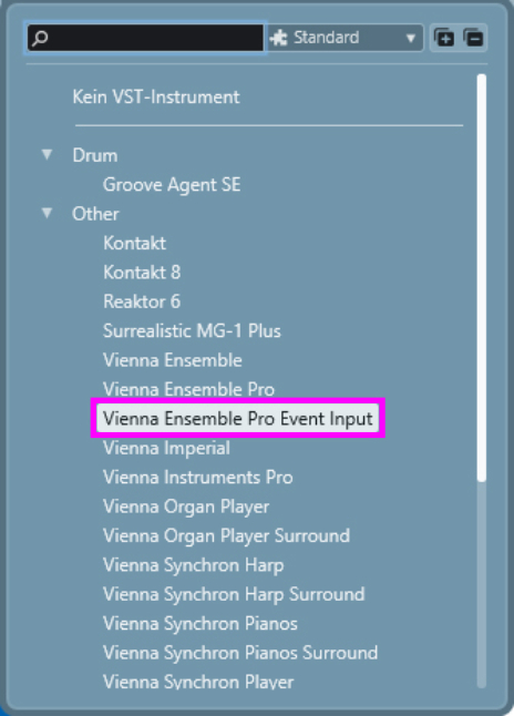 To add more MIDI input ports (1 Event Input plug-in adds 16 MIDI channels) Assignable to a Vienna Ensemble Pro plug-in, it sends MIDI to one of the available MIDI input ports in the connected Vienna Ensemble Pro Server instance, which circumvents the single MIDI port limitation of AU and VST.