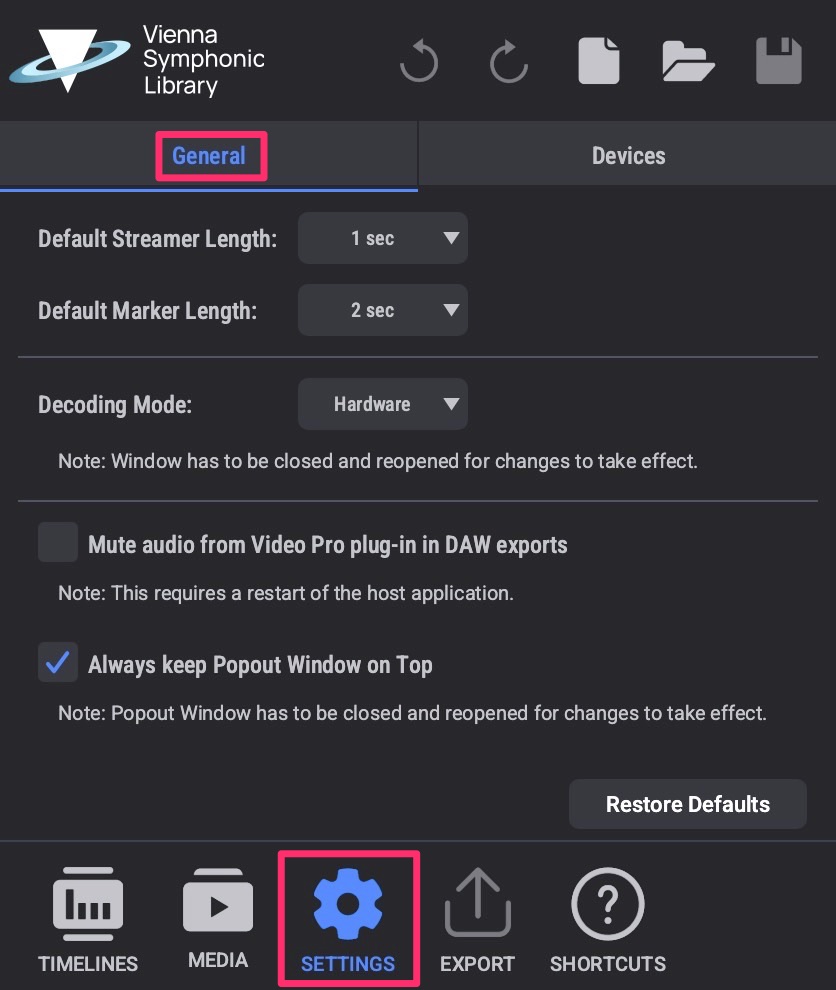 Mute audio from Video Pro plug-in in DAW exports: if this box is checked, the Video Pro plug-in's audio tracks will not be included when rendering audio in your DAW / host application. If you change this option, restart the host application to take effect.