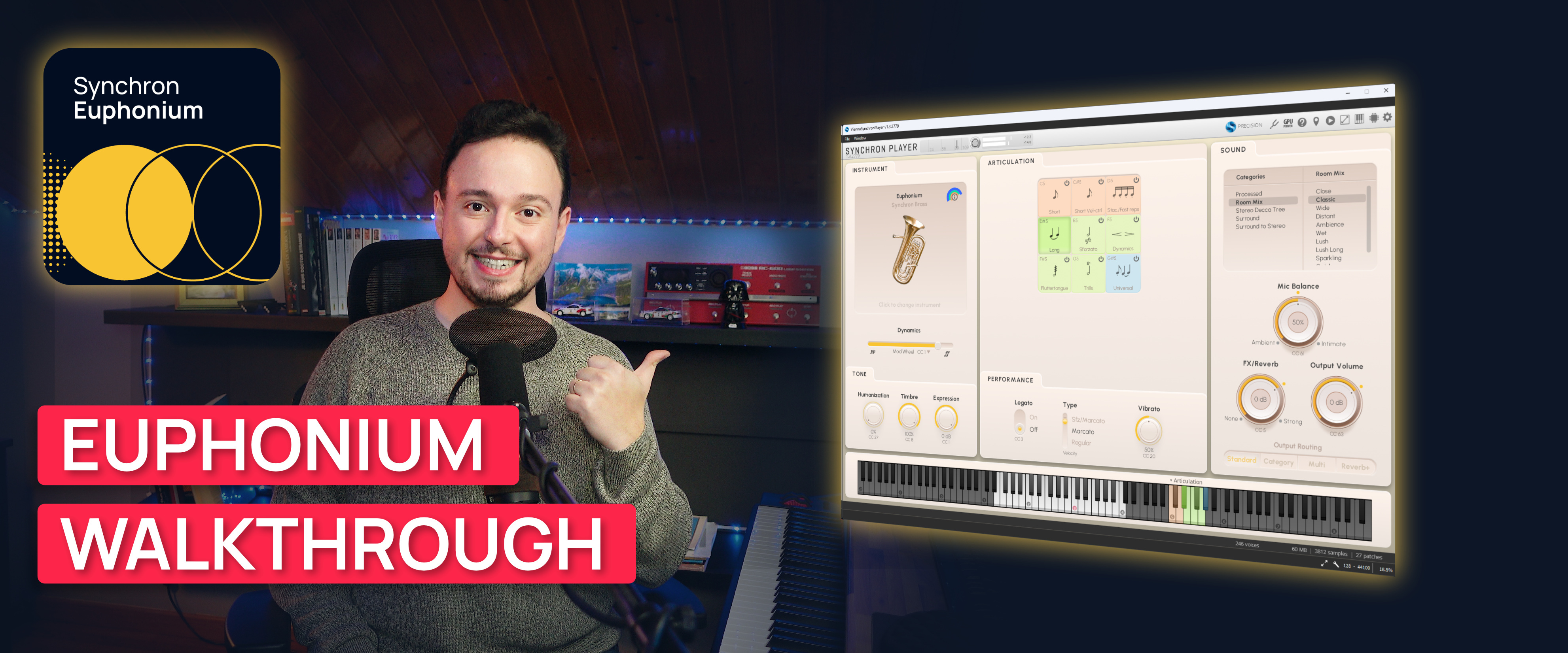 The euphonium’s smooth, velvety tone makes it one of the most expressive members of the brass family. Its singing voice bridges the gap between tenor and bass registers, offering lyrical beauty and emotional depth in both solo and ensemble settings. Recorded in the pristine, Hollywood-proven ambience of Stage A at Vienna Synchron Stage, this instrument provides the full range of articulations, all easily accessible through the new Flow View interface for natural and expressive performances.